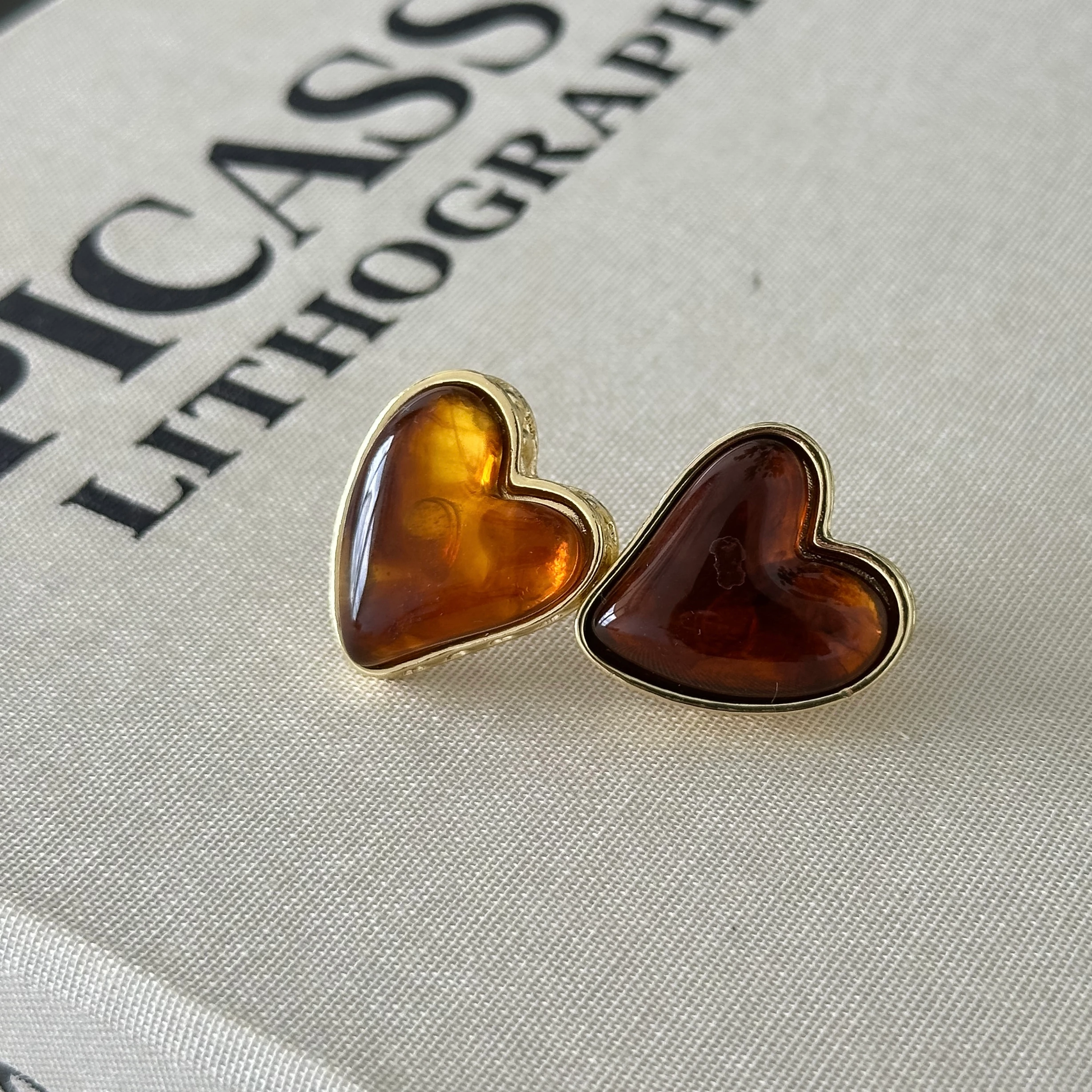 Turuncu Dolgulu Kare Vintage Gold Küpe